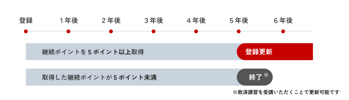 継続ポイント対象セミナーを受講し、5年間で継続ポイントを5ポイント以上取得すること