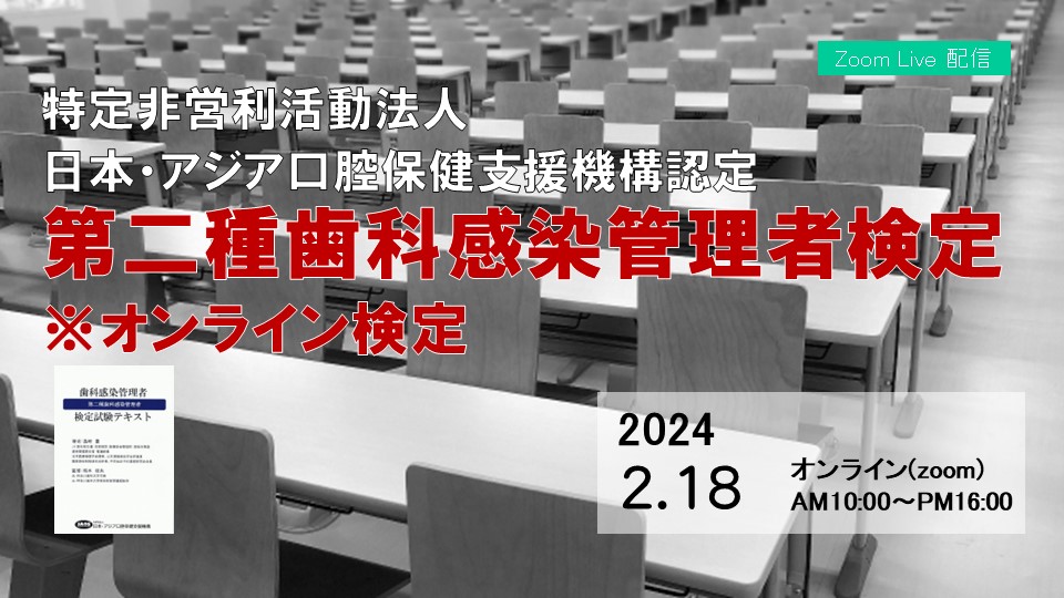 日本・アジア口腔保健支援機構は、「第二種歯科感染管理者検定」を下記の通り実施します。