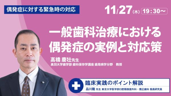 2025年11月27日 (木) オンライン 継続ポイント対象 臨床実践セミナー全7回シリーズ(第5回)/一般歯科治療における偶発症の実例と対応策「施設基準研修の内容を院内に落とし込む」ということを目的に、【臨床実践セミナー】(全7回)を開催します!