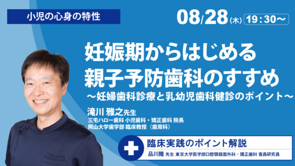 2025年08月28日 (木) オンライン 継続ポイント対象 臨床実践セミナー全7回シリーズ(第2回)/妊娠期からはじめる親子予防歯科のすすめ「施設基準研修の内容を院内に落とし込む」ということを目的に、【臨床実践セミナー】(全7回)を開催します!
