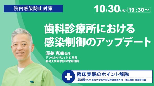 2025年10月30日 (木) オンライン 継続ポイント対象 臨床実践セミナー全7回シリーズ(第4回)/歯科診療所における感染制御のアップデート「施設基準研修の内容を院内に落とし込む」ということを目的に、【臨床実践セミナー】(全7回)を開催します!